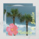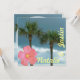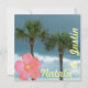 Convite de chá de praia tropical com palmeiras, hibisco rosa-coral e texto ousado divertido. Altere o texto conforme necessário.