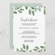 Este verão, um convite para chás de eucaliptos tropicais verdes e tropicais é perfeito para um chá de casamento elegante. A design apresenta uma folhagem elegante de eucalipto desenhada à mão, inspirando a atmosfera positiva de verão.