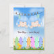 Um bebê gêmeo chá com bebês pendurados na linha de roupas.