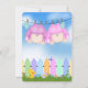 Garota gêmea chá com bebês pendurados na linha de roupas.