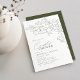 Ilustração delicada e elegante de flores desenhadas à mão e detalhes modernos de tipografia de scripts, em verde e branco escuro, simples e romântico. chás de excelente floral para casamento rústico moderno, casamento de jardim do país, e simples casamento de boho no verão e no inverno. Totalmente personalizável com qualquer cor para corresponder ao seu tema de casamento. Veja todas as peças correspondentes na coleção.
