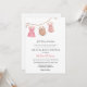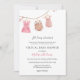 Um chá de fraldas virtual é perfeito quando os entes queridos não podem estar juntos, mas ainda querem chá para que os pais estejam com amor e presentes para se prepararem para a chegada do seu bebê. Este longo Chá de fraldas à distância por correio apresenta uma ilustração adorável de roupas cor-de-rosa para bebês penduradas numa linha de roupa. Personalize com suas informações ou clique em "Clique para personalizar mais" para editar estilos de fonte, tamanho e cores.