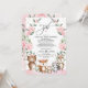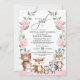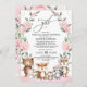 Este super bonito convite para chás de fraldas de matas apresenta adoráveis animais florestais e terras verdes florais cor-de-rosa-mole. Use as ferramentas de design para editar o texto, alterar a cor e o estilo da fonte para criar um design de convite exclusivo.