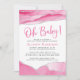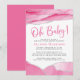 Quando a família e os amigos não podem estar juntos, celebre a futura mãe com um chá de fraldas virtual online. Este convite de chá de fraldas de menina fresca e chica apresenta "Oh Baby!" em um roteiro cor-de-rosa na moda e aquarelas de godes cor-de-rosa com veias de falso brilho prateado.