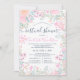 Cancelamento de última hora? Evento de longa distância? este é o perfeito chá virtual para celebrar qualquer bebê, chás de panela Um primavera romântico, elegante e moderno pintado à mão e um convite de festas virtual de chá de verão com belos cor-de-rosa pastel macio, cor azul empoeirado e coral cor-de-pêssego e uma moderna fonte elegante de roteiro, isto é perfeito para uma festa elegante com confete de glitter rosa dourado.