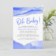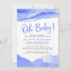 Quando a família e os amigos não podem estar juntos, celebre a futura mãe com um chá de fraldas virtual online. Este convite para chá de fraldas de garoto novo e chic tem "Oh Baby!" em um script azul na moda e aquarelas de godes azuis agados com veias de falso brilho prateado.