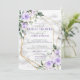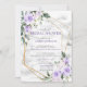 Moderno e moderno, este maravilhoso design virtual de chá de panela apresenta letras de mão rústicas, uma geometria dourada falsa embelezada com rosas de cor d'água púrpura e lavanda lilás e flores, sobre uma textura falsa de mármore branco. Parte de um conjunto correspondente. Convidados Elegantes de Direitos Autorais. Todos os direitos reservados.