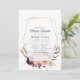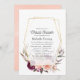 Boho floral, bebê virtual de longa distância ou chá de panela com peões e rosas de ameixa cor-de-rosa e burgundy com estrutura geométrica dourada.
