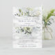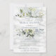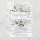 Crie o convite perfeito para o seu chá de panela virtual, uma botânica moderna, com este belo e empoeirado eucalipto azul verde-verde-aquarela botânica, com um falso fundo de mármore da Carrera, esplash de aquarela e tipografia de script tendenciosa com letra de mão. Parte de um convite de casamento. Copyright Elegant Invites, todos os direitos reservados.