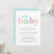 Quando amigos e familiares estão longe, celebre a futura mãe com um chá de fraldas virtual. Este convite para chás de fraldas moderno e neutro em termos de gênero apresenta "oh baby" num arco-íris de uma tipografia audaciosa, azul, verde, rosa, roxo e laranja. Você pode personalizar facilmente com os detalhes do chá virtual, incluindo um link de acesso on-line, informações do registro, onde enviar cartões e presentes e onde obter mais informações.