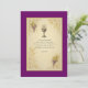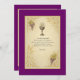 O legante convite da Primeira Comunhão, com símbolos católicos tradicionais do Sacramento Abençoado: um cálice radiante marcado com "IHS", grupos de uvas, e caules de trigo, enquadrados em escroto de ouro ornamentado. O texto é colocado contra um fundo pergaminho que se bordeia em violeta, fazer perfeito para convidar os entes queridos para uma ocasião mais sagrada e alegre. Ideal para raparigas ou rapazes, com texto totalmente personalizável para se adequar à celebração da tua família.