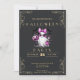 Convide seus hóspedes para uma celebração na moda e assustadora com este convite de festas de Dia das Bruxas, moderno e temerário. O fundo preto do quadro negro negro captura imediatamente a essência estranha do Halloween, enquanto o elegante trabalho de rolagem em cada canto adiciona um toque refinado ao design. O simples texto dourado se destaca lindamente contra o pano de fundo preto, dando um olhar elegante e polido a todos os detalhes do evento. No centro do convite está um fantasma super fofo e em voga, completo com um arco na cabeça, óculos de sol chic, uma bebida de café em uma mão, uma bolsa na outra, e uma lanterna-jack ao seu lado. Este personagem adorável traz uma vibração reluzente e moderna para a imagem clássica do Dia das Bruxas, perfeita para uma celebração divertida e festiva. Ao redor do fantasma estão morcegos brincalhões e estrelas cintilantes, acrescentando uma camada extra de brilho e charme ao design geral. O verso do convite continua o tema negro do quadro negro, mantendo um olhar coeso e na moda. Com a sua mistura perfeita de diversão assustadora e talento de moda, este convite irá dar o tom para uma festa de Halloween que é igual, chique e festiva, assegurando que seus convidados estejam prontos para uma noite de estilo assustador e diversão mágica!