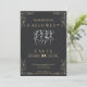 Convide seus hóspedes para uma noite de diversão assustadora com este convite de festas de Dia das Bruxas moderno e lúdico. O fundo preto do quadro negro define um tom estranho perfeito, com um elegante trabalho de rolagem em cada canto adicionando um toque de sofisticação. O simples texto dourado contrasta lindamente com o pano de fundo escuro, fazer todos os detalhes do evento se destacam com uma vibração na moda, minimalista. A peça central deste convite apresenta quatro esqueletos cintilantes dançando alegremente, acrescentando uma reviravolta única e divertida às imagens tradicionais do Dia das Bruxas. Suas pop metálicas brilham contra o fundo preto, criando um olhar atraente e festivo que captura a essência tanto de assustador quanto de divertido. Esses esqueletos dançantes certamente fazem seus convidados sorrir e antecipar uma noite de entretenimento emocionante. No verso, continua o elegante preto do quadro negro, garantindo um design coeso e polido por todo o lado. Este convite é a forma perfeita de estabelecer o clima para um evento de Halloween que combina elegância, diversão e um pouco de charme assustador, fazer de que seus convidados estejam animados por uma noite de diversão mágica de Halloween!