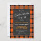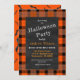 Jogue uma festa de Halloween com um convite de quadro de discussão em uma xadrez clássica de preto e laranja. Altere facilmente os detalhes na seção personalizada.