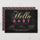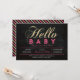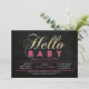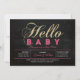 Celebre um dia especial para o seu amado com este chá de fraldas moderno! Este design apresenta uma tipografia simples, mas na moda, "Hello Baby" com textura rosa quente e dourada brilhante.