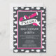 Cuta é um convite para chás de fraldas de menina com um avião rosa-quente com uma faixa colocada sobre um fundo preto de quadro negro com nuvens brancas.