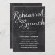 Este convite elegante, preto e branco para o ensaio de brunch apresenta uma caligrafia linda, rústica e um fundo de chalkboard.