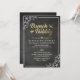 Brunch e Bubble / Modelo de Chá de panela - Roteiro Dourado Elegante e Quadro Floral Branco no Fundo Grunge Black Chalkboard. Um Design perfeito para o seu grande dia. Todo estilo de texto, cores, tamanhos podem ser modificados para ajustado das suas necessidades!