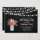 Celebre seu dia especial com este convite de na moda. Este design apresenta luzes de cordas, jarro de pedras e buquê de flores com fundo de quadro.