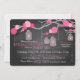 Chalkboard inspirado em galho de árvore decorado com rosas cor-de-rosa e design de cartão de chá de panela de jarros de mason gravados com doce coração.
