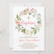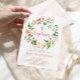 Barato de convites de batismo para bebês impressos. Este bonito design tem uma coroa de água floral com flores cor-de-rosa pastel e verde. Personalize a design com os detalhes da festa Baptism do seu filho. O verso tem uma cor rosa ou você pode usar o espaço para adicionar texto e fotos adicionais. Clique em Personalizar para escolher qualquer cor de fundo e editar as fontes de texto e as cores para criar um convite Baptism exclusivo para a sua bebê.