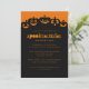 Convide todos os seus amigos para a sua festa de Dia das Bruxas spooktacular com este convite divertido. As silhuetas de cinco abóboras diferentes estão no topo do convite. A cor de fundo pode ser editada de laranja para qualquer cor que você escolher. Todo o texto é completamente personalizável.