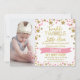 Você está procurando um convite para primeiro aniversario de uma menina com alguma briga? Esta design pode ser ideal para você. Apresenta estrelas de vários tamanhos em dourado falso, brilho rosa e faixa rosa. O fundo é branco. Excelente para uma festa de primeiro aniversario cor-de-rosa-ouro Este convite de primeiro aniversario de estrelas cintilante da menina está pronto para ser personalizado. Visite a loja para mais designs neste tema. O mesmo design está disponível sem uma foto.