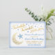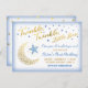 Comemore seu aniversário de meninos com este convite fofo. Uma lua de ouro falsa e uma estrela pequena com uma borda azul e estrelas. Nada de papel real. Personalize com seu próprio texto. Ilustração original por pj_design.