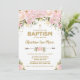 Convites Chamada de Batismo Floral Cor-de-Rosa Esbranquiçad