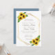 girassóis modernos e românticos, de cor aquosa, com um dorso azul escamoteado e uma falso estrutura geométrica dourada.