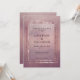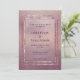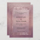 O convite de casamento rosa-rosa-cinza com cor-de-rosa cintilante, com caixilhos de ouro-rosa contra um fundo texturizado de pedra-rosa, com um quadro opalescente no centro, com seus nomes e detalhes em uma serifa preta elegante e letra de bloco.