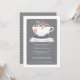 Uma adorável equipe de porcelana branca transborda com flores rosa bonito com uma teabag personalizada apenas para ela. Tudo em um esquema de cor de cinzas cor rosa, branca e pomba suave, este Convite de festas de chá Chá de fraldas certamente agradará.