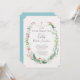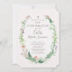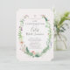 Bonito convite inspirado na floresta com um quadro composto por samambaias, flores silvestres, ervilhas doces, borboletas e florestas verdes. As delicadas mangas pintadas rodeiam seu texto anunciando seu dia especial de Confirmação - com uma cruz no topo da armação e doces pequenos cogumelos vermelhos de conto de fadas no fundo. Um design simples em lindas cores de flor silvestre com robins azul de ovo no verso.