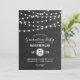 Design de convite para festa de formatura de de verão moderno de chic com simples luzes de cordas luminosas brilhantes penduradas no topo e uma mistura clássica de fontes modernas e caligráficas em um fundo de textura de cor-de-água falso impresso. Um design de pré-disquete simples e na moda, perfeito para o verão! Clique no botão PERSONALIZAR TI para personalizar fontes, mover texto e criar seu próprio design de convite exclusivo.