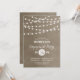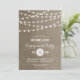 Design de convite para festa de noivado de casamento moderno de verão com simples e elegantes lanternas luminosas brilhantes penduradas no topo e uma mistura clássica de fontes modernas e caligráficas em um fundo de textura de cor-de-água falsa impresso. Um design de pré-disquete simples e na moda, perfeito para o verão! Clique no botão PERSONALIZAR TI para personalizar fontes, mover texto e criar seu próprio design de convite exclusivo.
