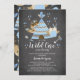 Adorável convite de um chá de fraldas selvagem com uma coruja, ursos e raposa da floresta, com uma árvore azul molhada sobre fundo de quadro. Sacudir o nosso convite para ver um toque especial adicional.