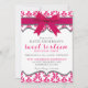 Este convite de aniversário feminino, elegante e doce, de dezesseis anos apresenta um fundo de cor damasco rosa-quente com uma fita rosa brilhante e um arco destacando o topo. Disponível em cores personalizadas.
