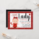 Convites de festa de bebê menina joaninha com adorável bebê menina vestida com um lindo traje vermelho e preto com laço vermelho em um fundo de brilho vermelho. Esses convites de festa de bebê joaninha são facilmente personalizados para o seu evento, basta adicionar seus detalhes. Você também pode alterar a cor do fundo no verso.