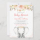 Planeje um adorável chá de fraldas de menina com estes doces convites para bebês de elefante. Flores cor-de-água, cor-de-rosa e verde, moles, com uma ilustração elefante fofinha.