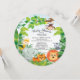 Um convite para chá de fraldas de safari redondo super fofo para um chá de fraldas para meninas, um convite para chás de fraldas para rapazes ou um chá de fraldas neutro em relação ao gênero. A selva de nossos queridos pequenos animais convida um macaco-enforcador bonito, girafa, elefante, tigre, leão e zebra em um fundo azul-céu ombre com um quadro de folhas da selva. Aditamento maravilhoso ao seu tema da selva ou chá de fraldas do tema animal safari. Sacudir o nosso safari contemporâneo e na moda para ver uma correspondência de volta para um toque especial extra.