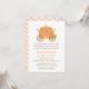 Um convite bonito, elegante e elegante que tem uma carruagem de princesa de abóbora laranja inspirada na história do conto de fadas, Cinderela. Padrão de ziguezague da Chevron para o plano de fundo na página inversa. Perfeito para meninas da princesa chegando no outono. Personalizar com detalhes da festa.