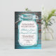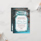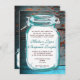 Teal Mason Jar Rustic Barn Wood Convite para um casamento no estilo country. Um fundo de estilhaços de madeira vermelha, azul, em apuros, com um design de jarro azul-turquesa. Basta adicionar sua própria formulação de convite para casamento a esta modelo. As costas também têm o fundo do celeiro com um pequeno pote de pedreiro no canto inferior com a palavra "Amor" escrita sobre ele.
