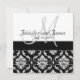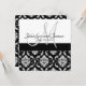 na moda Black and White Floral Casamento tema damasco Convite com um monograma simples e moderno e nomes design. No texto do convite de retorno mostra um exemplo de texto que permite que cada convite seja personalizado escrevendo manualmente o nome de cada convidado no espaço fornecido. Por favor, NÃO escolha o estoque de papel metálico, pois é mais difícil escrever nesta superfície brilhante. design de layout por Elke Clarke© 2009. Gráficos licenciados para uso. Você precisa de ajuda ou gostaria de um outro tipo de reaquecimento de cor, entre em contato com luxuryweddinginvitations@gmail.com