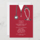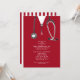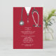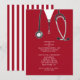 A festa de formatura de uma escola de medicina criativa convida a apresentar os excrementos vermelhos do hospital e o estetoscópio. Editar texto para criar convite de festas médico exclusivo.
