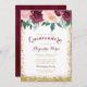 Convites Chamadas Florais Douradas de Quinceanera Burgundia