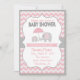 Convites para duche de Elefante Rosa e Cinza para bebê