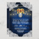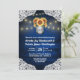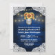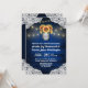 Janto de ensaio de Sunflower Mason Jar - apresenta um marinho real ou fundo de celeiro azul aparado com rendas e decorado com luzes cintilantes de cordas quentes. O design também apresenta um buquê de girassóis dentro a mason jar que você pode personalizar as iniciais para as de sua escolha. O verso também apresenta o mesmo cenário de rusticidade do país que corresponde à frente.