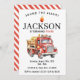 O convite de aniversário do tema do caminhão de bombeiros d'água para o rapaz.