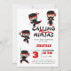 Prepare-se para uma comemoração repleta de ações com o chamado Convite de Aniversário de Todos Ninjas! Este convite é perfeito para jovens guerreiros que sonham com aventura e dissimulação. Apresentando gráficos ninja ousados, ele define o palco para um partido de alta energia, criado por ninja, cheio de diversão, desafios e entusiasmo. Totalmente personalizável, este convite é uma forma excelente de reunir os amigos do seu filho para uma missão de aniversário inesquecível. Convide seus pequenos ninjas para se juntarem ao último grupo de treinamento ninja!