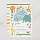 Animais safari de crianças bonitas e divertidas são são um convite de aniversário com ilustração de animais safari. Há um leão, um macaco, um tigre, um elefante, um cobra, um flamingo, uma girafa, um crocodilo, uma tartaruga, e três pequenos pássaros enquadrados com grama e verde. Há uma grande bolha de discurso azul com "Chamando todos os animais de festa!" em maiúsculas divertidas e escritas à mão. O nome do seu filho aparece abaixo com seus próximos anos e detalhes do evento. Cartões invertidos a um fundo de faixas coloridas. Perfeito para a festa de aniversário de um menino. Sinta-se à vontade para me mandar qualquer pergunta, ficarei feliz em ajudar.